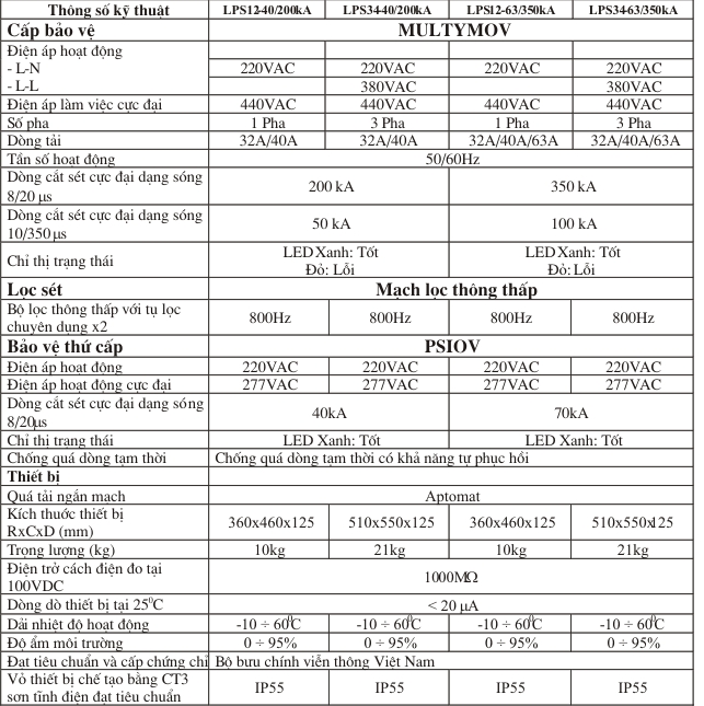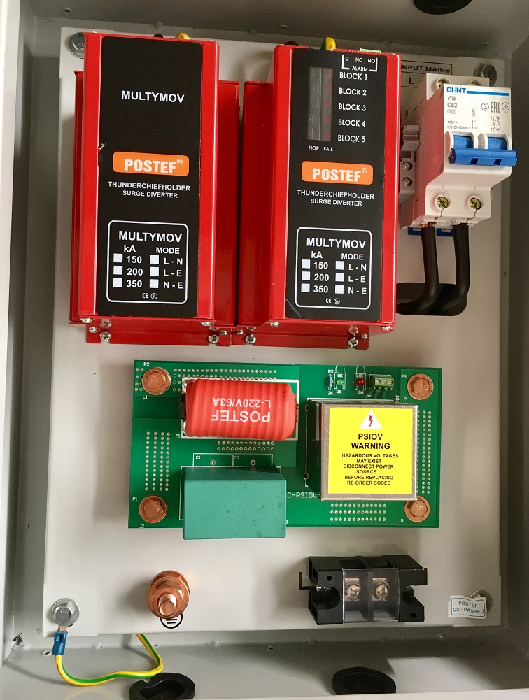 Cắt sét sơ cấp: Phần cắt sét sơ cấp sử dụng công nghệ MultyMOV có tác dụng triệt tiêu lượng lớn các xung sét và xung quá áp xuống đất hoặc xuống dây trung tính.